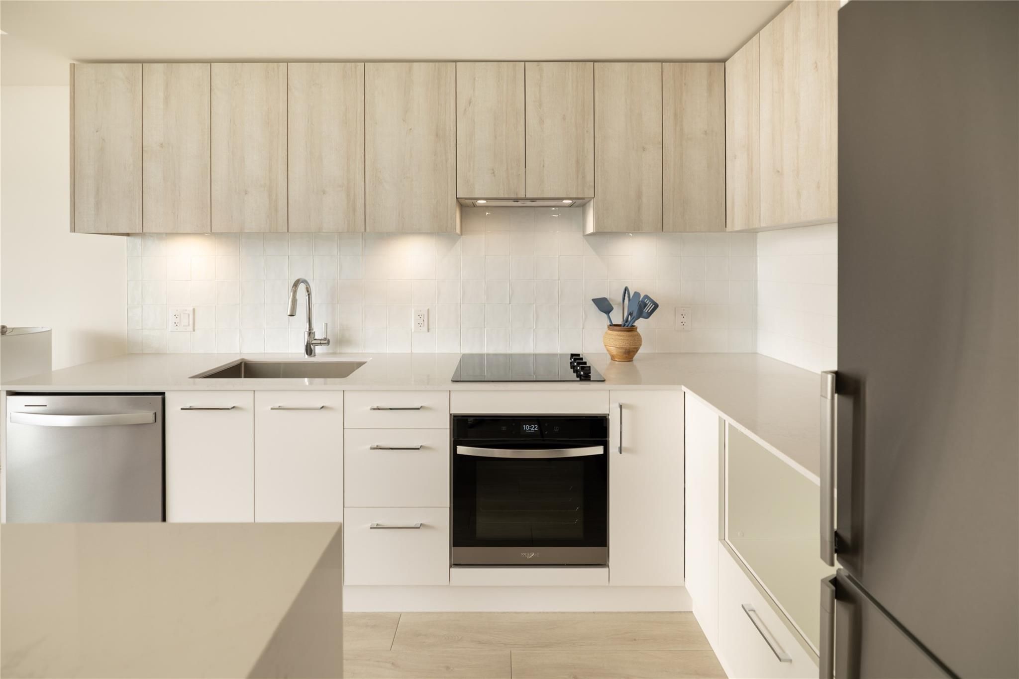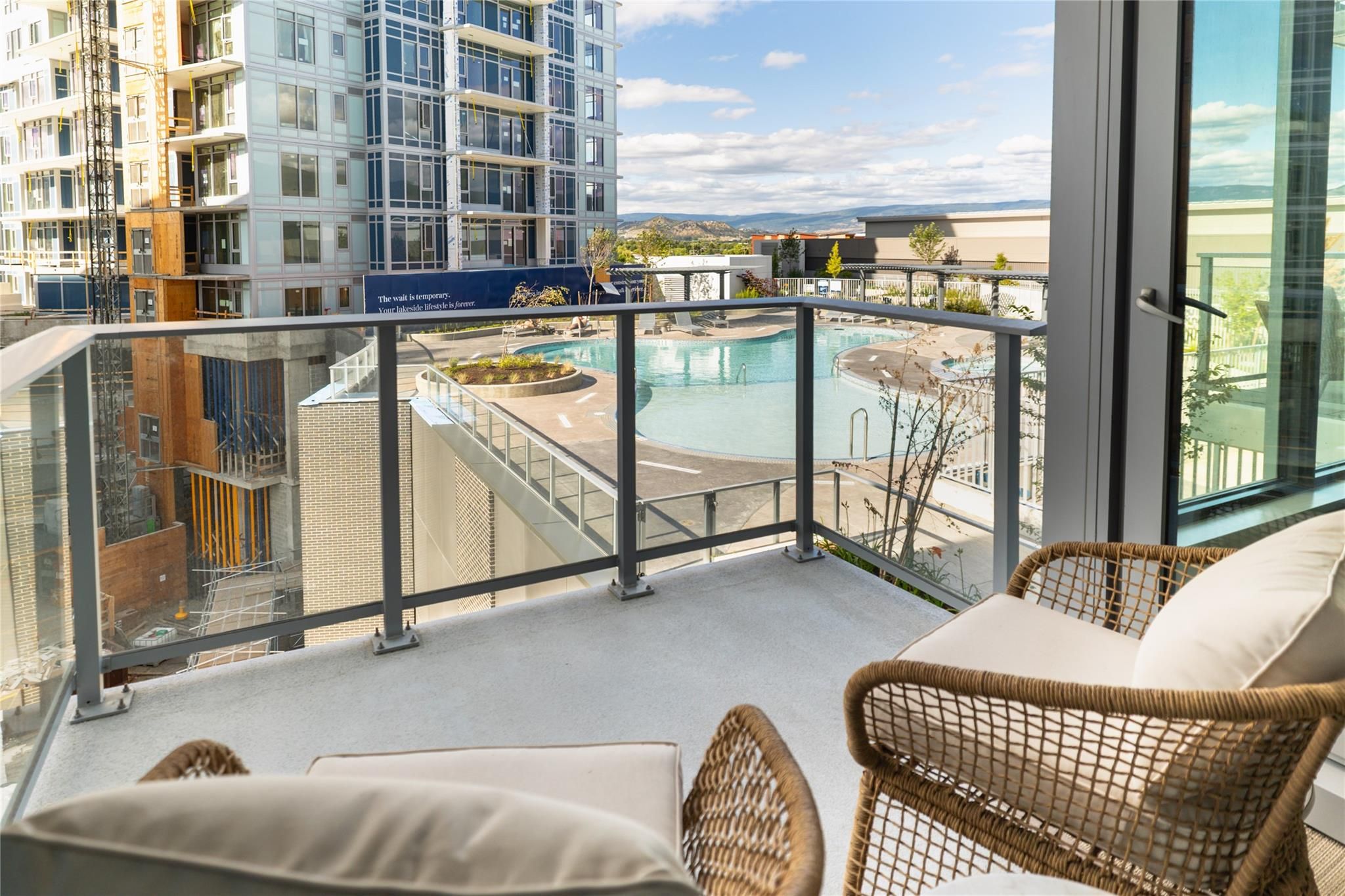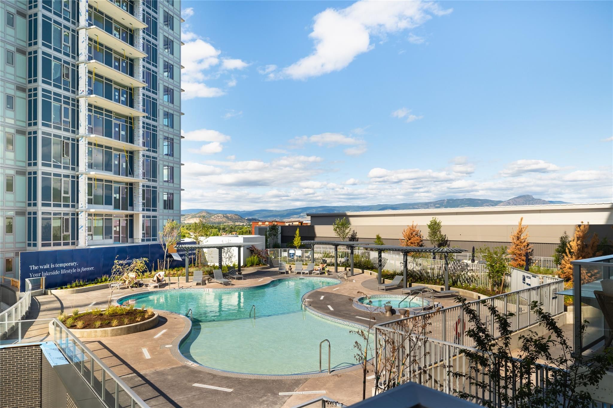 Set on a high floor, the home is bathed in natural light & framed by sweeping views of the lake & resort pool deck. The modern interior blends style & function with upgraded closet organizers, a sleek kitchen showcasing stainless steel appliances, quartz surfaces, & a versatile island—perfect for both everyday living & entertaining. A spacious patio extends your living space outdoors, ideal for morning coffee or evening wine against a spectacular backdrop. Every detail has been designed for comfort & ease, from the curated furnishings to thoughtful finishings that create a truly move-in ready sanctuary. Resort-inspired amenities elevate the experience: outdoor pool & hot tub, BBQ & fireside lounge, shared kitchen & conference room, co-working spaces, a 2000 sqft fitness & yoga studio, & even a convenient dog wash station.