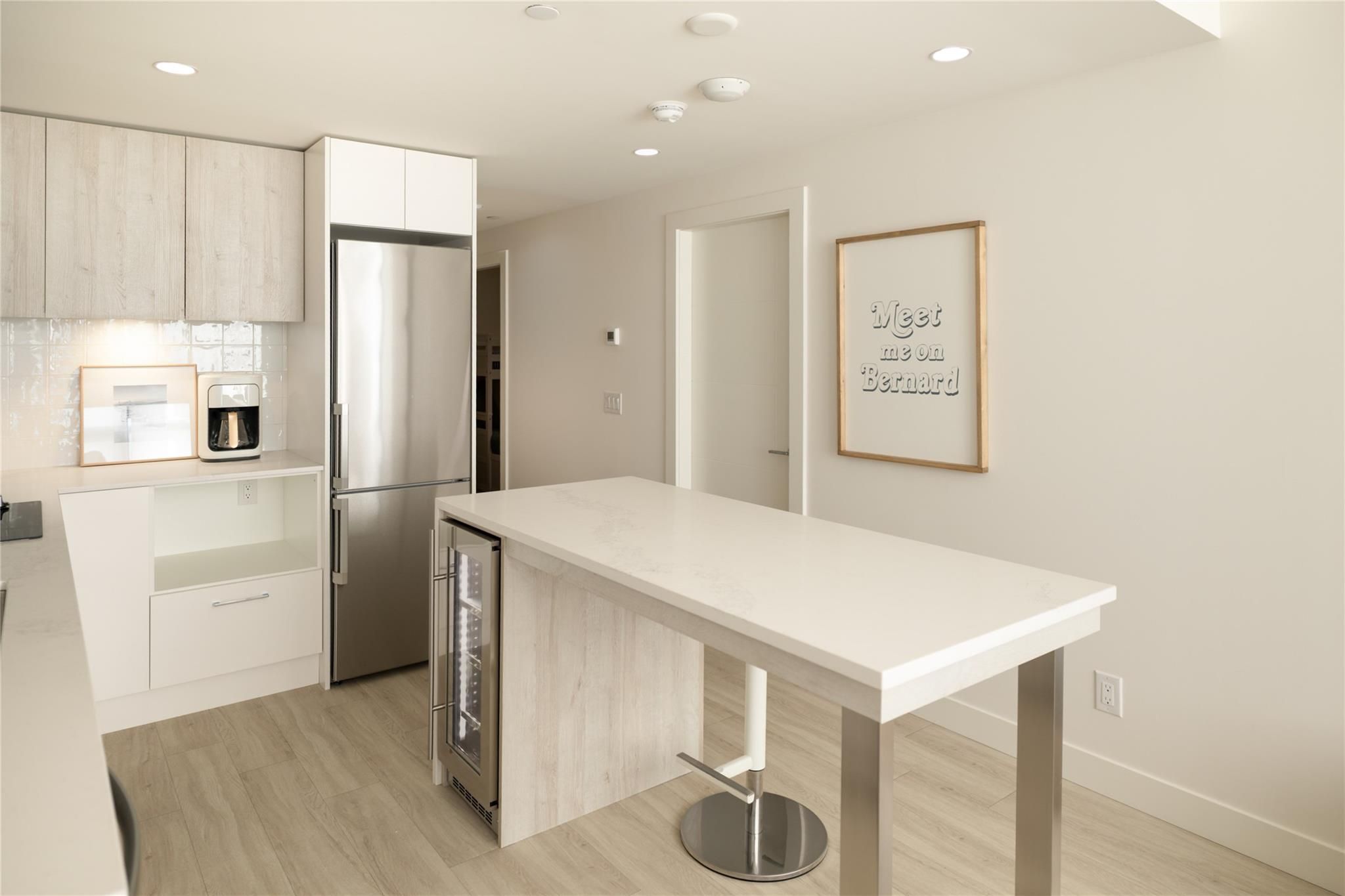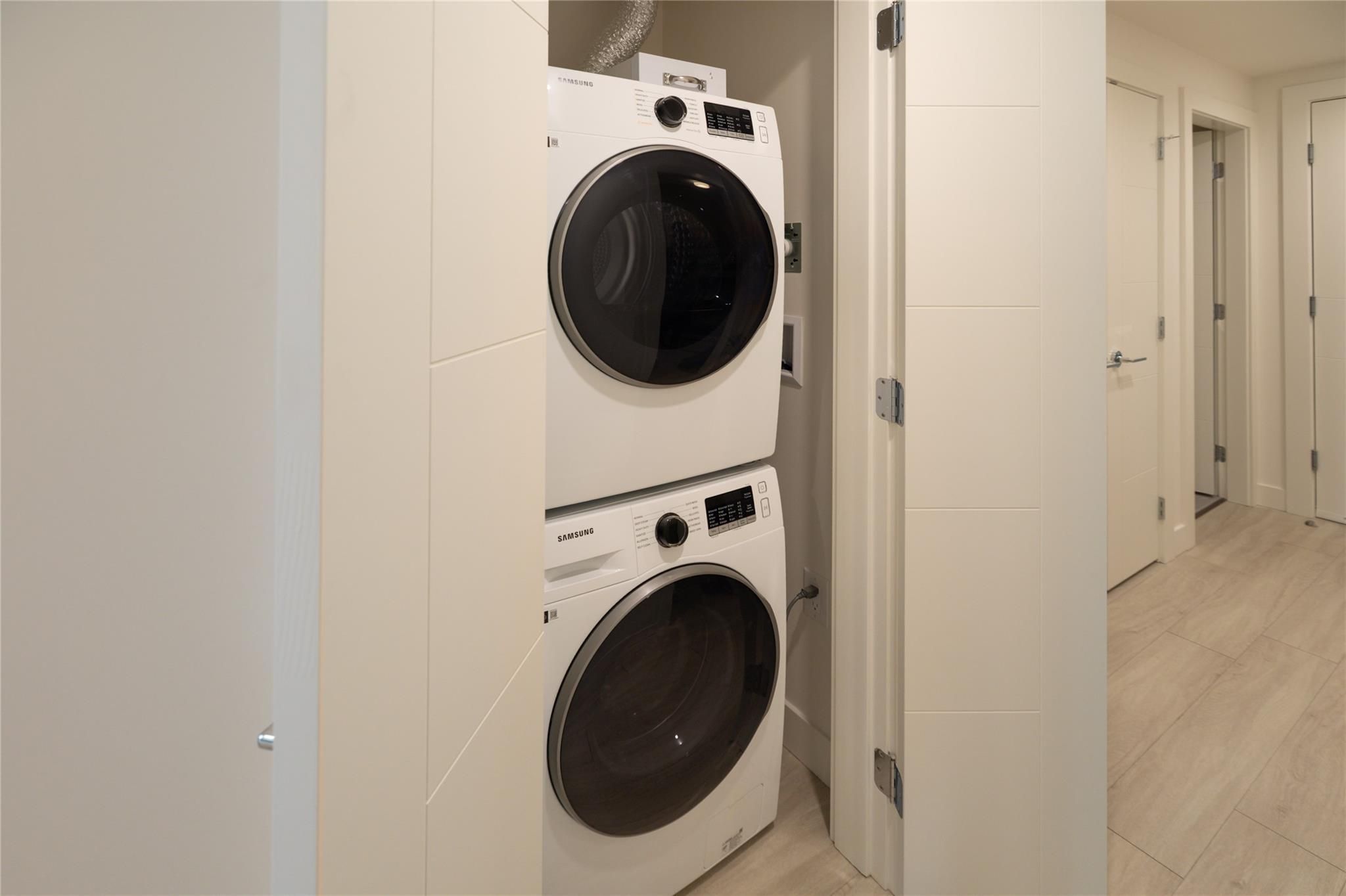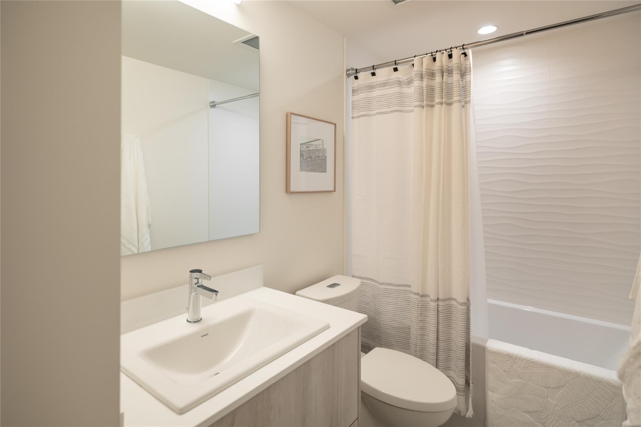 Set on a high floor, the home is bathed in natural light & framed by sweeping views of the lake & resort pool deck. The modern interior blends style & function with upgraded closet organizers, a sleek kitchen showcasing stainless steel appliances, quartz surfaces, & a versatile island—perfect for both everyday living & entertaining. A spacious patio extends your living space outdoors, ideal for morning coffee or evening wine against a spectacular backdrop. Every detail has been designed for comfort & ease, from the curated furnishings to thoughtful finishings that create a truly move-in ready sanctuary. Resort-inspired amenities elevate the experience: outdoor pool & hot tub, BBQ & fireside lounge, shared kitchen & conference room, co-working spaces, a 2000 sqft fitness & yoga studio, & even a convenient dog wash station.