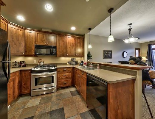 This 2 bedroom plus den townhouse is ski-in and has easy ski-out to the Mt. Morrisey Chairlift, with a short walk to the village. It features a full kitchen, washer/dryer, 3.5 baths, gas fireplace, private garage, 2TV/1DVD, complimentary Wireless Internet Access, and a private hot tub on the ground level. The dining room table can seat up to 6 and the breakfast bar comes with 3 stools. It is 1500 sq. ft and can sleep a maximum of 9 people. No pets. No smoking.