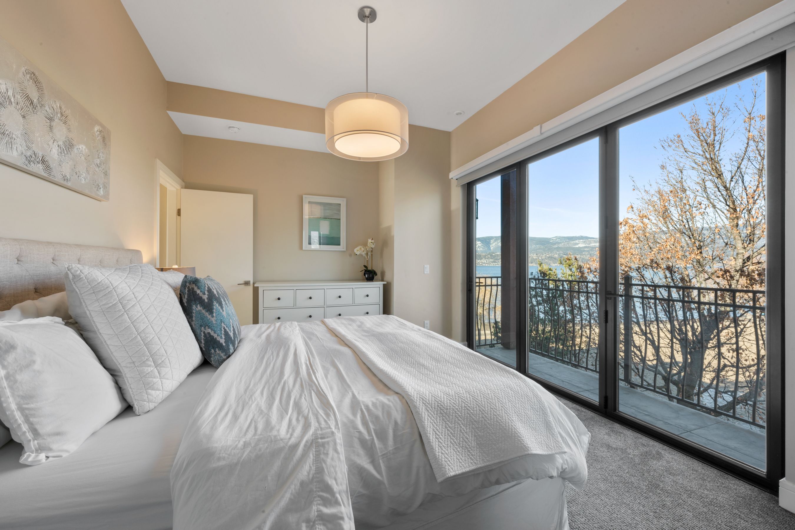 Welcome to your lakefront vacation home, on one of the last waterfront properties to be developed in Kelowna, in one of the most exclusive and desirable areas in the city. This luxury townhouse is nestled between Manteo Resort and Rotary Beach in a complex that has only 18 units and a high end resort style feel. This is a beautiful split-level corner unit with air conditioning / geothermal heating, 1420sqft, 2 bedrooms and 3 full bathrooms with room to comfortably sleep 6 people.