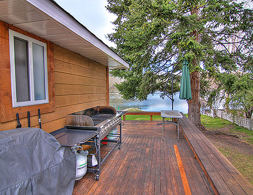 This single level cottage includes everything your group will require for a comfortable stay. The master bedroom offers a Queen size bed, while the other two bedrooms each have a set of bunks. For additional guests there is a sofabed in the living room. The open concept living/dining room and kitchen feature stunning lake views and are perfect for entertaining. Sliding glass doors lead to a wrap around deck which houses a BBQ and outdoor dining area. The yard gently slopes down to Skaha Lake and a small private beach.